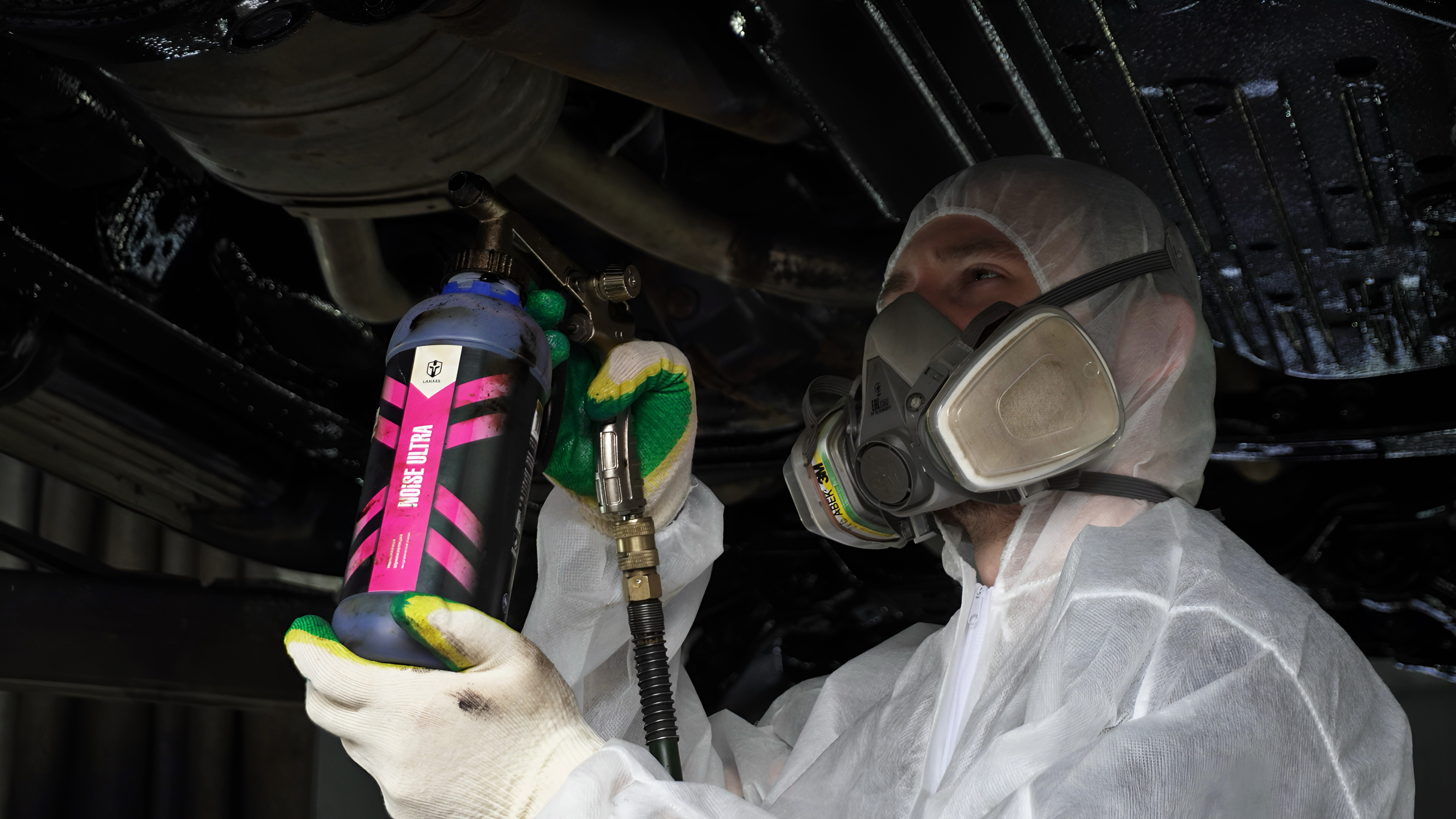 Снятие колес и пластиковой защиты, мойка, сушка, нанесение составов «Lamark Sound» снаружи автомобиля, а «Lamark InSide» внутри скрытых полостей.